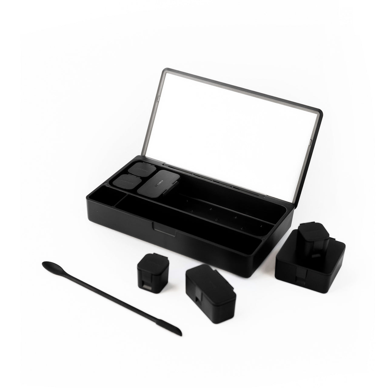 The silicone divider in the tool niche keeps your accessories neatly organised, while our decanting wand guarantees not a single drop of your precious skincare, make up, or any cosmetic product goes to waste.